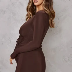 Maternité Robe Chemise De Grossesse Brossée Marron à Carreaux En Flannelle Oversize à Ourlet Incurvé