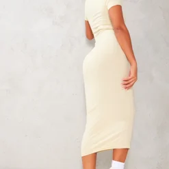 Zero Robe Longue Crème à Manches Courtes Et Découpe Asymétrique