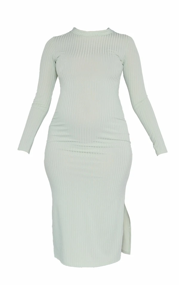 Maternité Robe de grossesse mi-longue côtelée vert sauge à manches longues