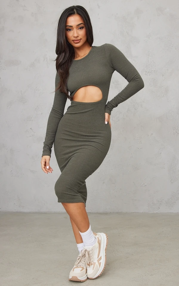 En amour avec la couleur kaki très tendance de cette robe. On est sous le charme de sa matière en maille côtelée, de son design découpé et des ses manches longues. Jouez sur les styles en la portant avec une paire de baskets blanches et quelques accessoires dorés. Love it !