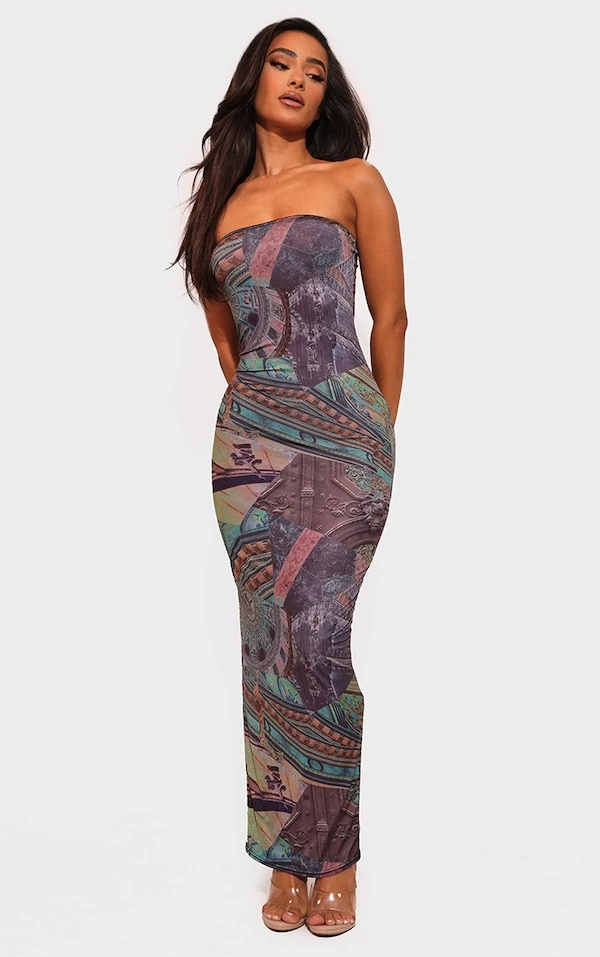 In love de cette robe longue ! Avec son imprimé patchwork multicolore et sa coupe bustier, elle fait un sans-faute. On aime la porter avec une paire de talons pour un look de soirée qui ne laisse pas indifférent. Crush sur vous !