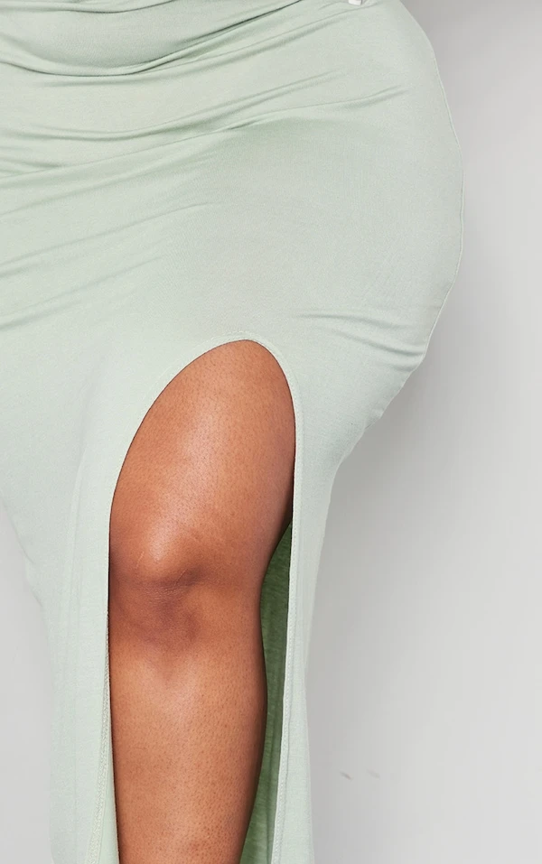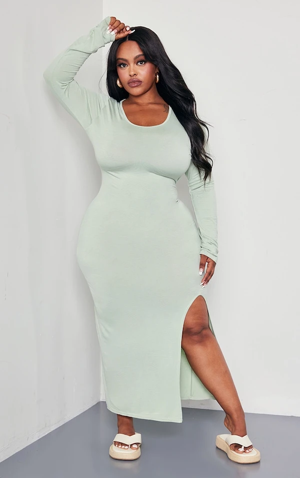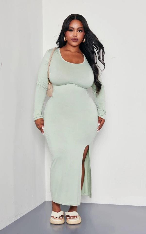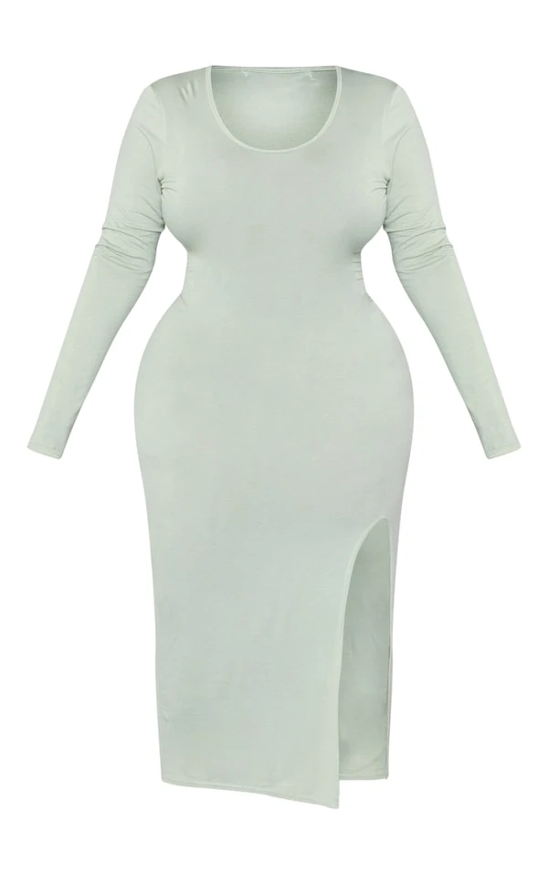 Plus Robe T-shirt mi-longue en jersey vert sauge fendue