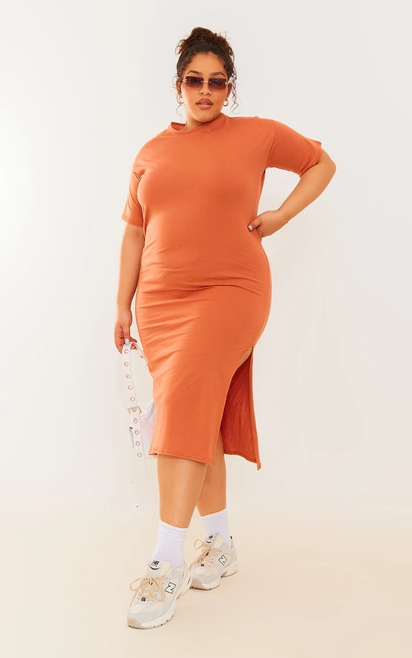 Plus Robe t-shirt mi-longue oversize rouille