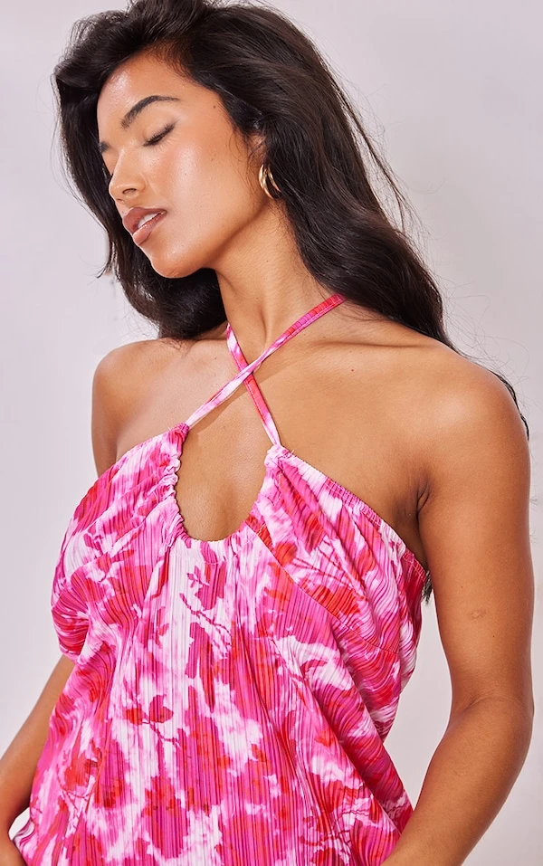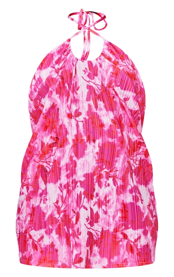 Robe droite dos nu plissée fleurie rose