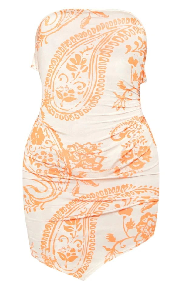Robe droite moulante bustier imprimé cachemire orange à nouer derrière