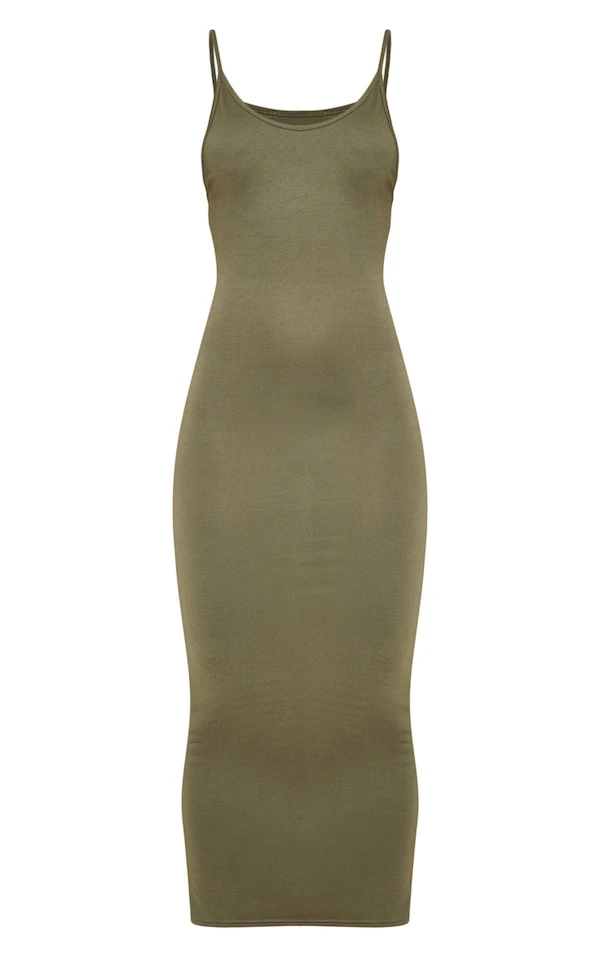 Canon cette robe longue ! En kaki, à bretelles et à design échancré sur les côtés, on la porte avec des sandales compensées et quelques accessoires. Vraiment pas compliqué d’être lookée 3