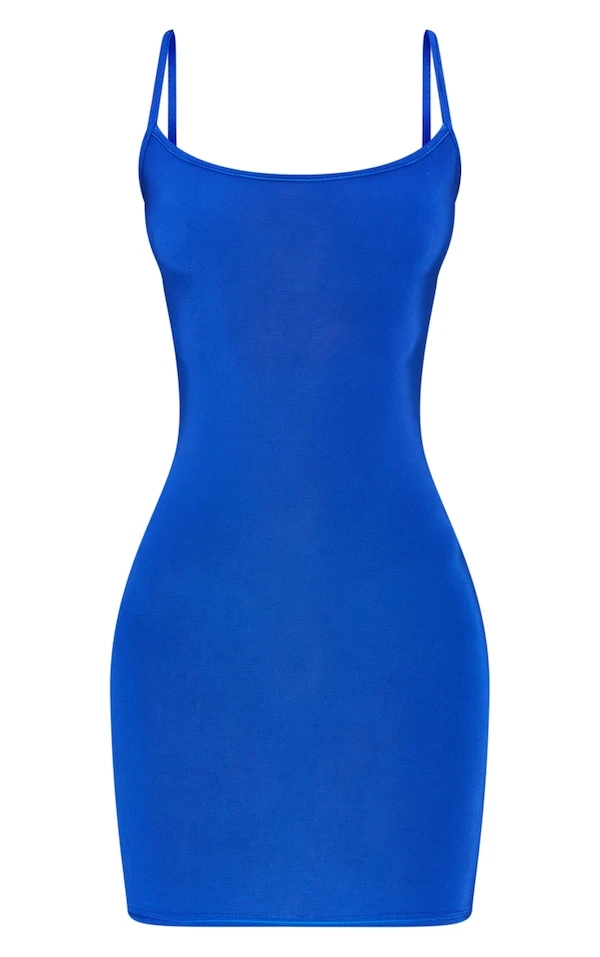 Robe moulante bleue à bretelles et dos découpé
