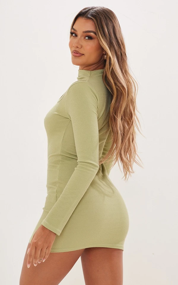 Look de bombe avec cette robe ! On adore sa coupe moulante flatteuse et son coloris vert sauge original. On la porte avec des bottines en similicuir noir pour le look complété. Vous êtes trop belle !