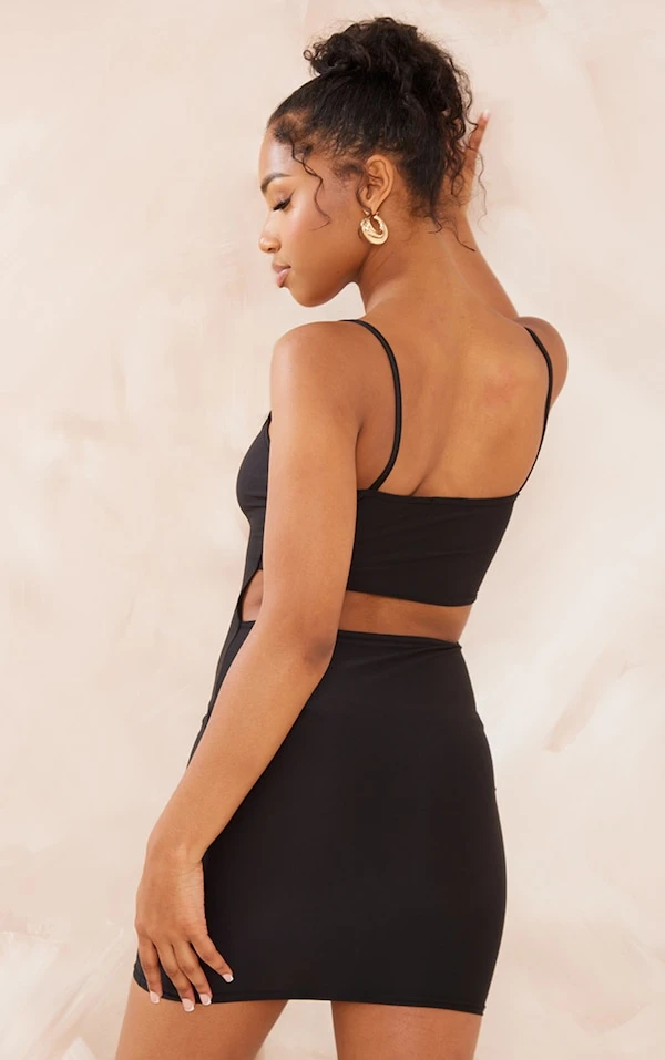 In love de cette robe moulante ! Avec sa couleur noire, ses découpes dans le dos et le détail de ses bretelles, on ne peut que valider. Il vous suffit de la porter avec une paire de talons et quelques bijoux dorés pour finaliser votre look du jour. What a babe !