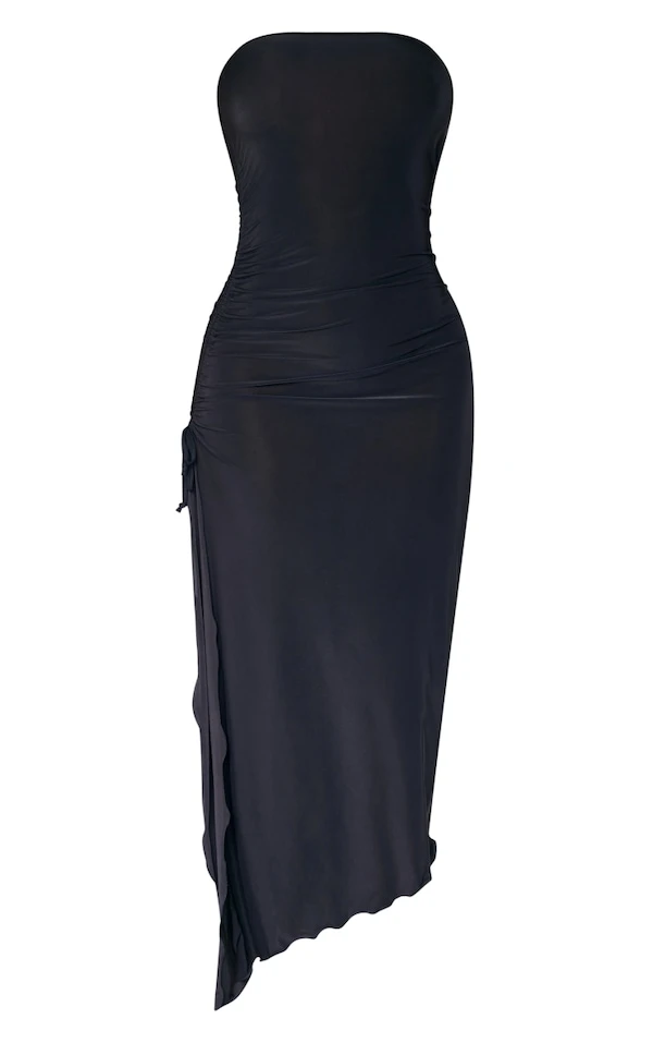 Shape Robe bustier moulante longue noire à côtés froncés et ourlet volanté