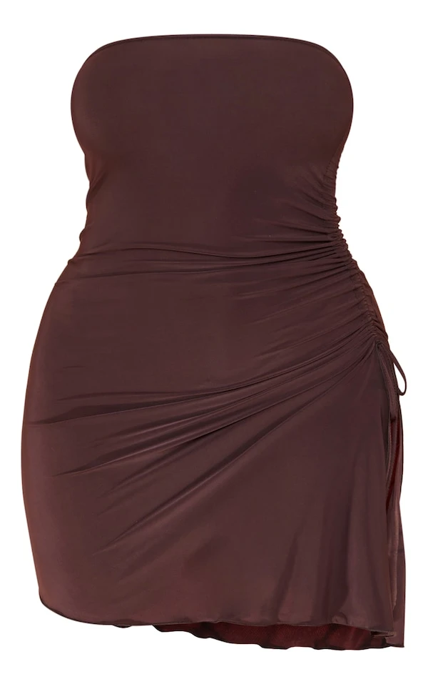 Shape Robe bustier très moulante marron chocolat à côtés froncés et ourlet volanté