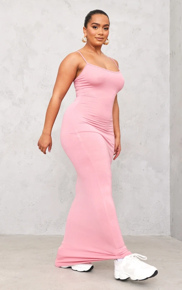 Trop beau ce coloris vieux rose ! On craque pour cette robe longue, sa matière en jersey toute douce et sa coupe près du corps. Idéale pour sortir, avec des chaussures chunky et des créoles, tout simplement !