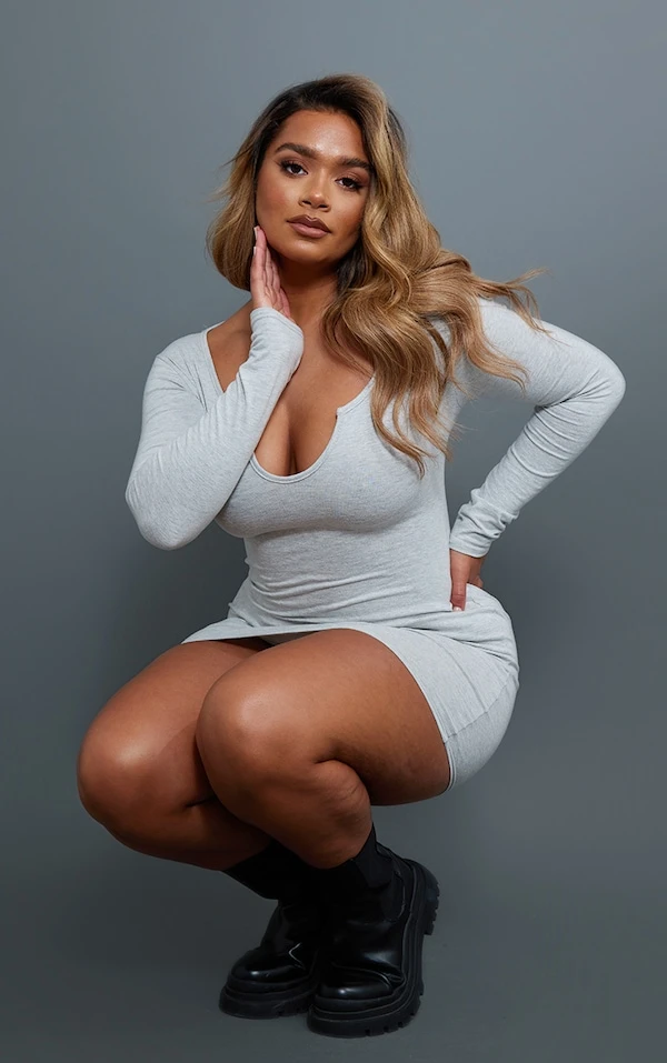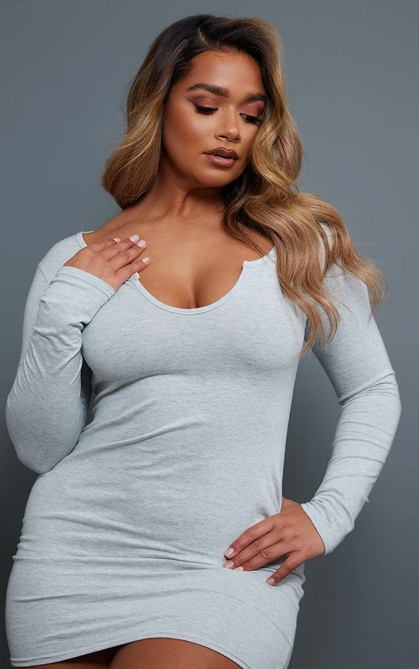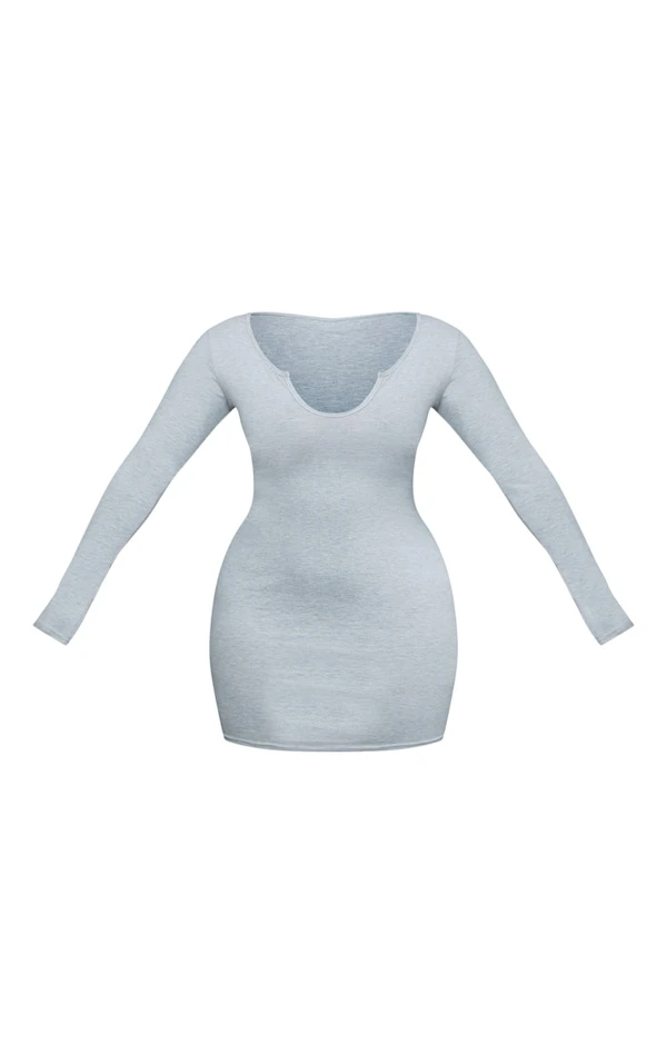 Shape Robe moulante manches longues en coton gris cendré à col découpé