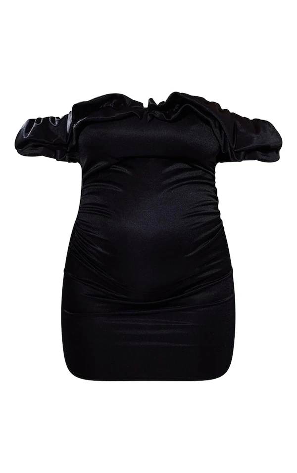 Maternité Mini robe de grossesse ajustée noire métalissée à fronces