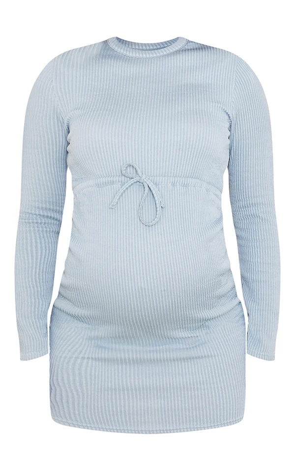 Maternité Mini-robe de grossesse bleu acier à nouer sur la taille