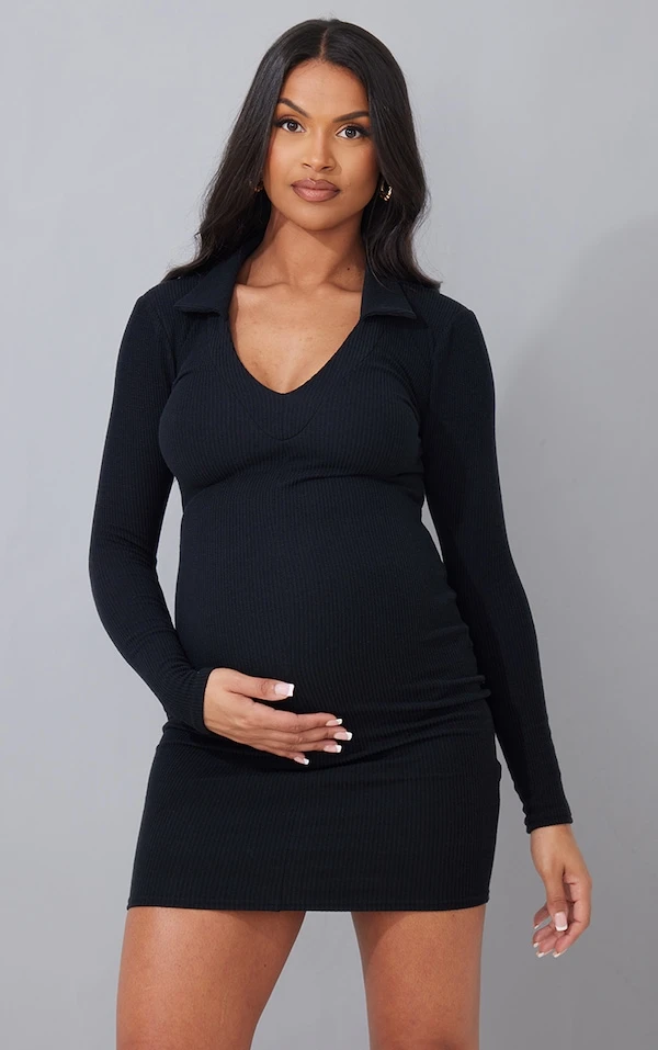 Maternité Mini-robe de grossesse noire à col polo et décolleté plongeant