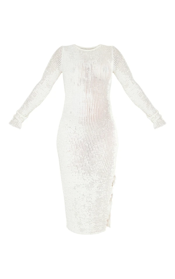 Maternité Robe de grossesse fendue mi-longue texturée crème