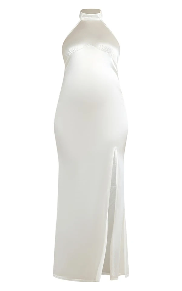 Maternité Robe de grossesse longue blanche moulante style disco à dos nu