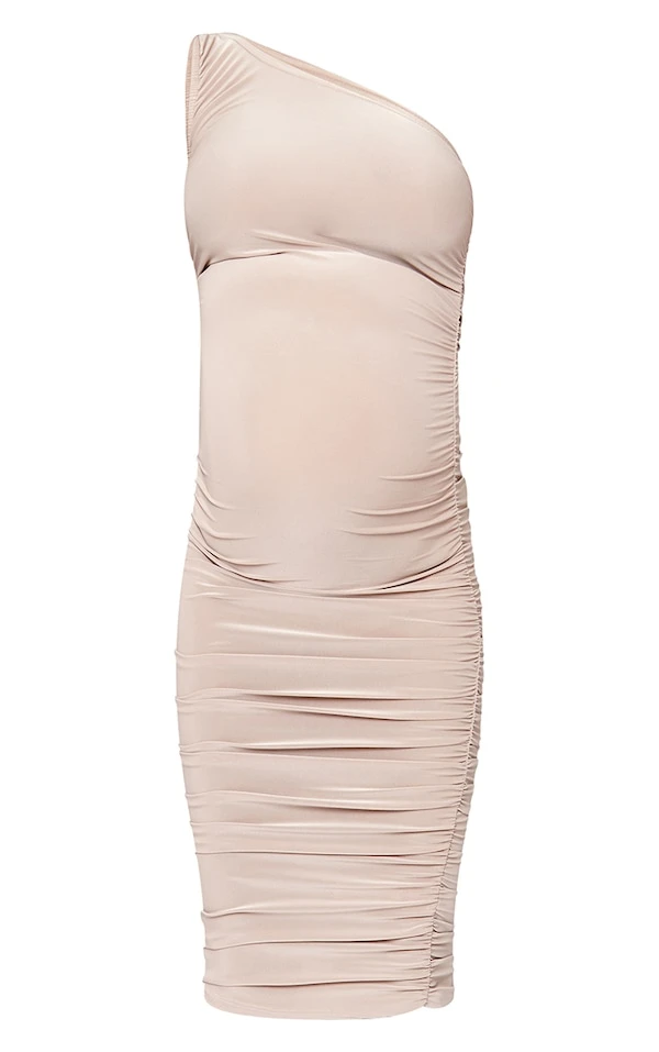 Maternité Robe de grossesse longue gris pierre moulante à épaule unique