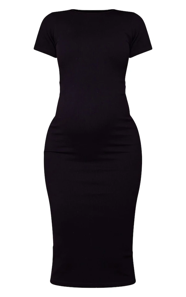 Maternité Robe de grossesse mi-longue côtelée noire détail contours à manches courtes