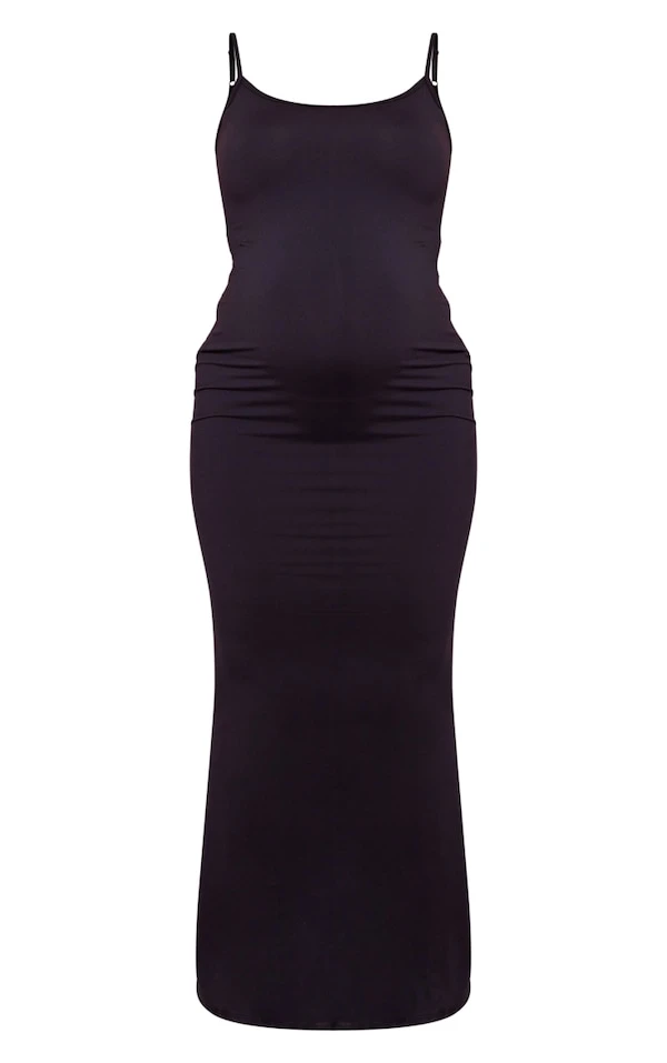Maternité Robe de grossesse mi-longue douce noire Sculpt à bretelles