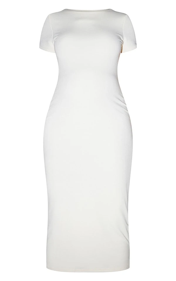 Maternité Robe de grossesse mi-longue en jersey crème à détail contours et manches courtes