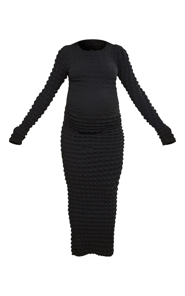 Maternité Robe de grossesse mi-longue noire texturée effet bulle