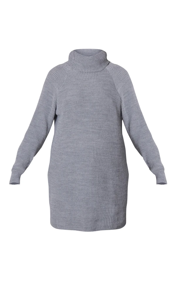 Maternité Robe pull de grossesse gris chiné oversize à col montant