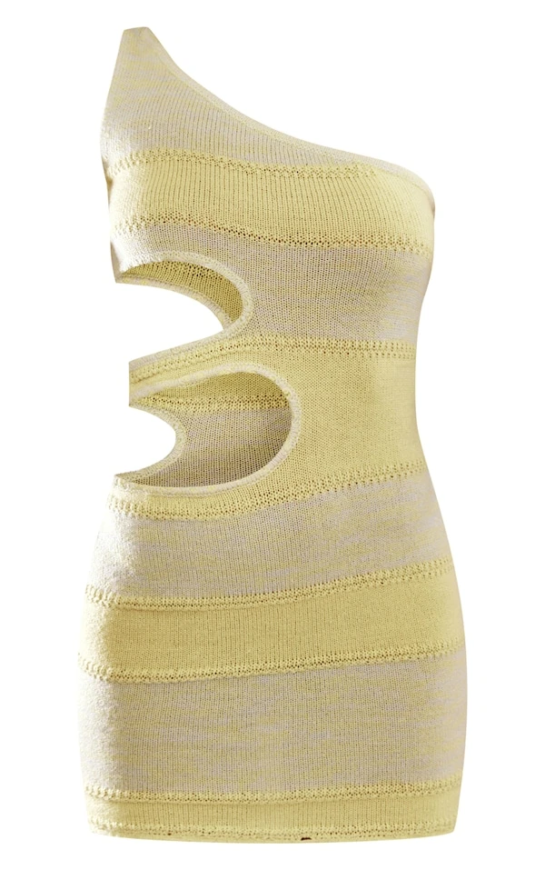 Mini robe en maille tricot jaune chiné à grosses découpes sur le côté