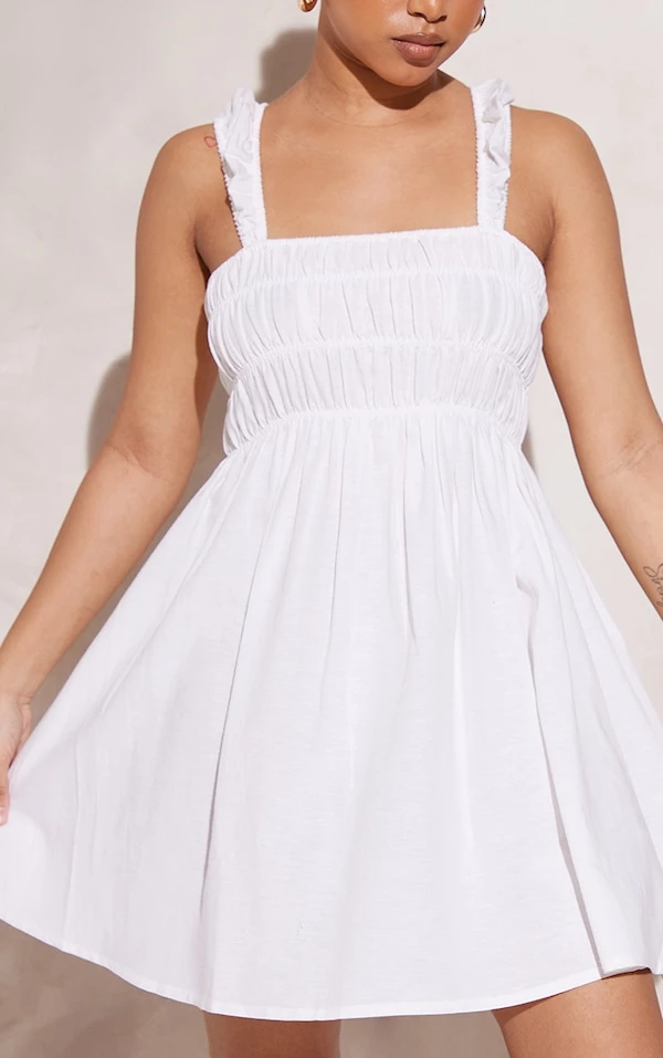 In love de cette mini-robe ! Avec sa couleur blanche, son effet lin canon et son design froncé, on ne peut que valider. Il vous suffit de la porter avec une paire de talons hauts et quelques accessoires dorés pour faire sensation en soirée. Love it !