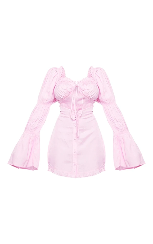 Petite Mini robe effet lin rose bonbon découpée devant