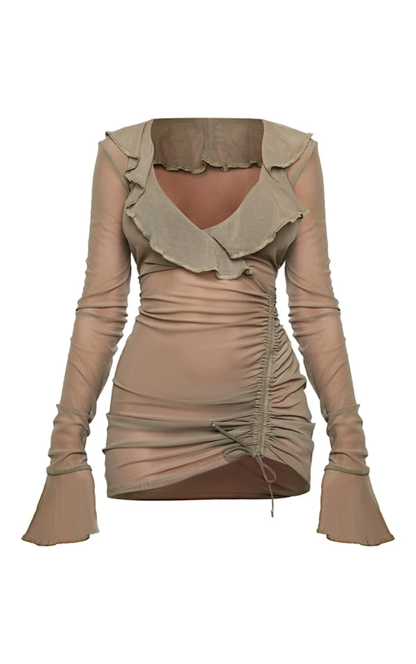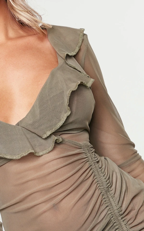 De toute beauté dans cette robe à la coupe mini. Avec la couleur vert olive de sa matière en mesh et son design à manches longues, il a tout pour plaire. Lors d’une soirée où vous voulez vous démarquer, portez cette robe avec une paire de sandales à lacets montants et quelques accessoires, tout simplement !