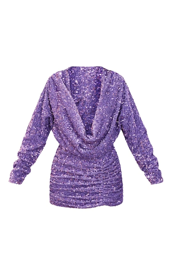Petite Mini robe en velours lilas à sequins et décolleté plongeant