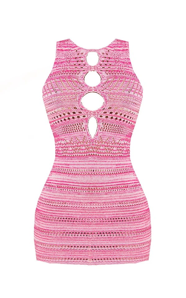 Petite Mini robe rose découpée en maille crochet