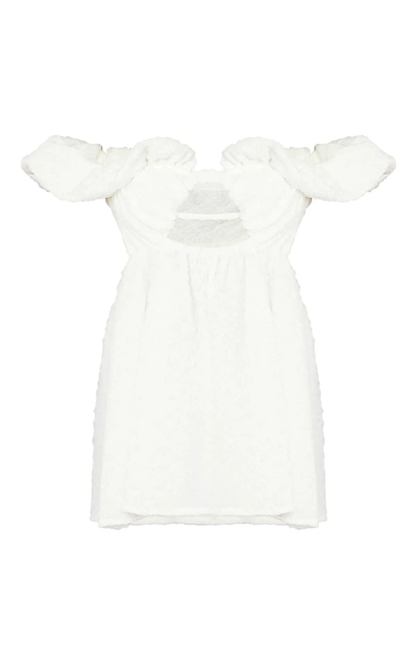 Petite Mini robe texturée fleurie blanche