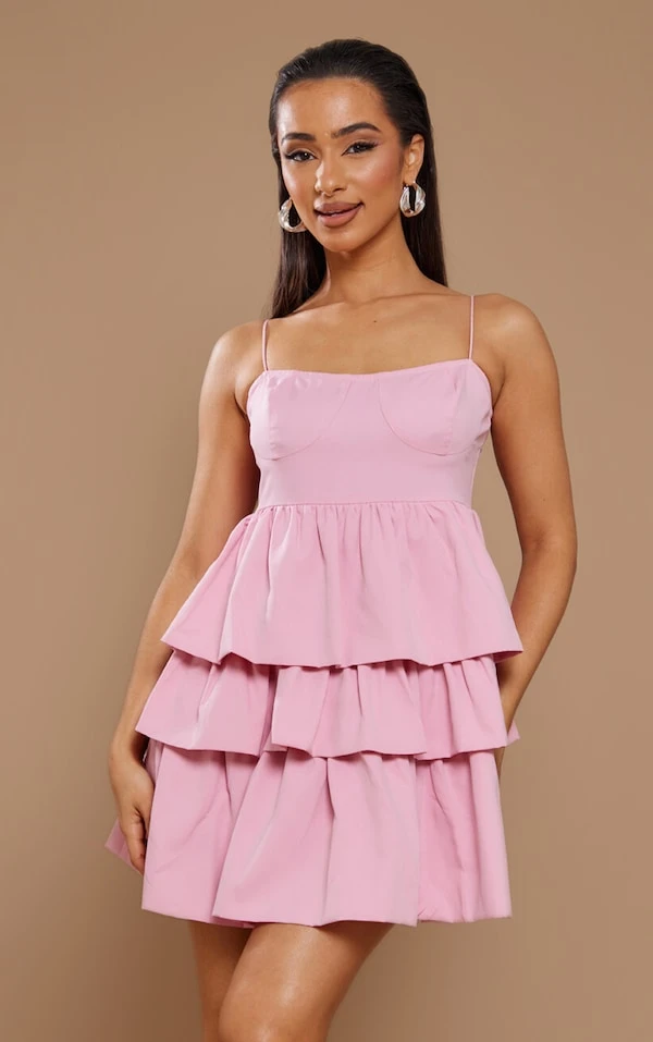 Petite Mini robe volantée rose bonbon à parties superposées