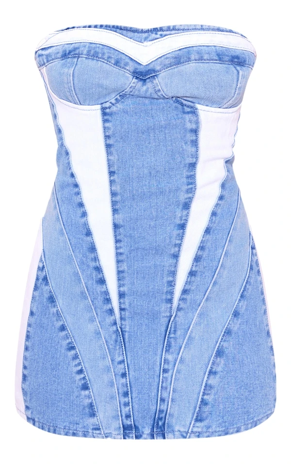 Petite Robe bustier en jean délavé bleu clair à parties contrastantes