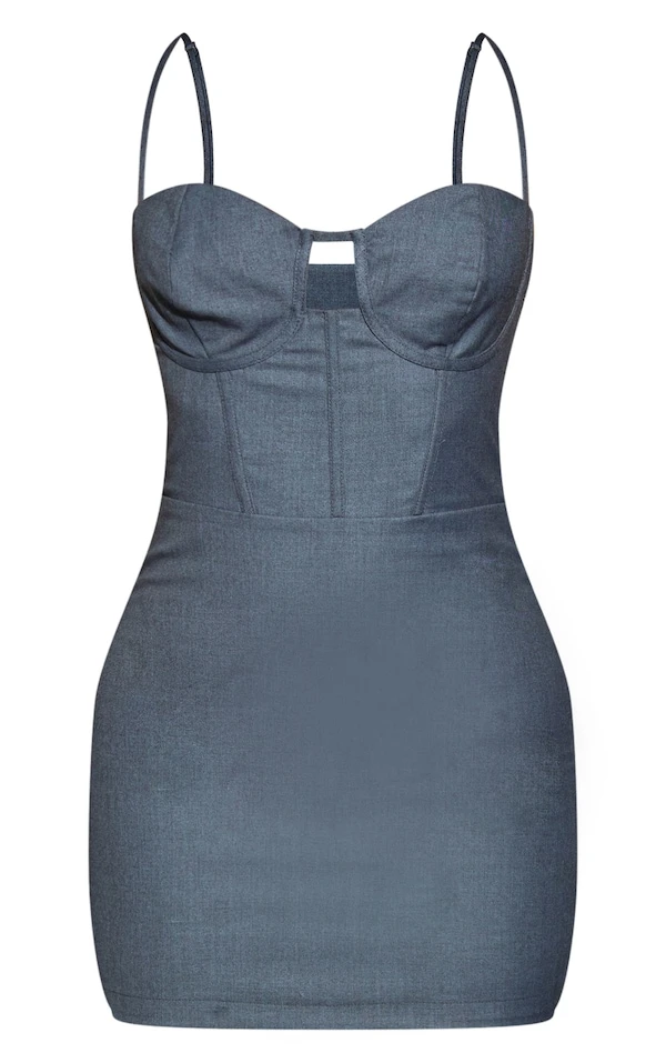 In love de cette robe ! Avec sa couleur gris anthracite et sa coupe corset, elle fait très plaisir. En soirée, on la porte avec une paire de talons et un sac à main argenté pour attirer tous les regards. Go faire une entrée remarquée !