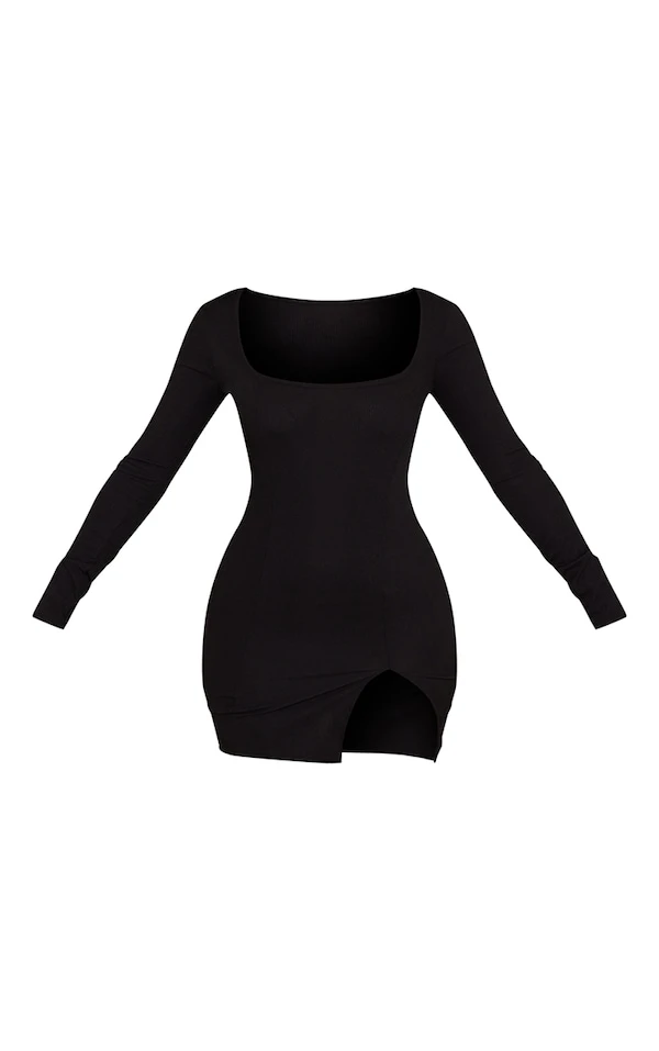 Petite Robe côtelée noire à manches longues et fente