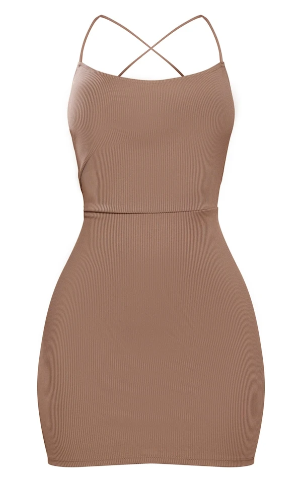 Petite Robe moulante côtelée taupe lacée dans le dos