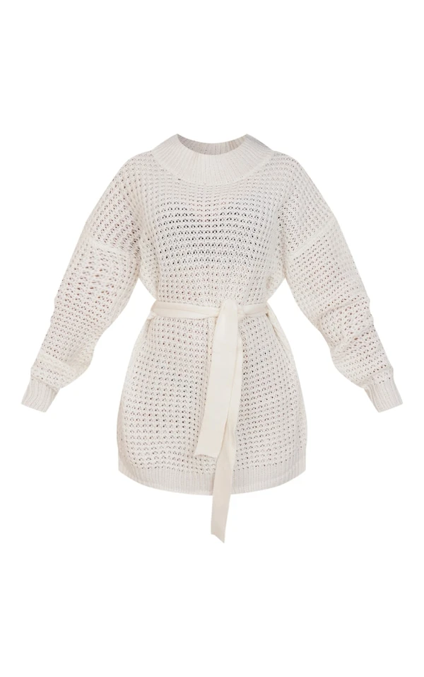 Petite Robe pull en maille tricot douce crème à ceinture