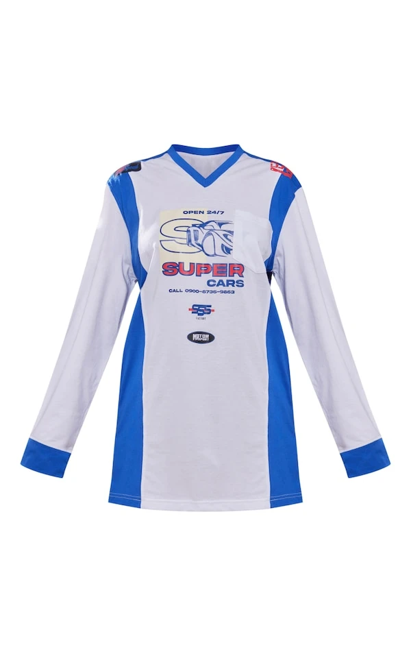 On shoppe illico cette robe t-shirt ! Sa couleur bleue est canon et on adore son imprimé style motocross. Pour finaliser votre look du jour, elle se porte avec une paire de bottines noires et une veste oversize. Crush sur vous !