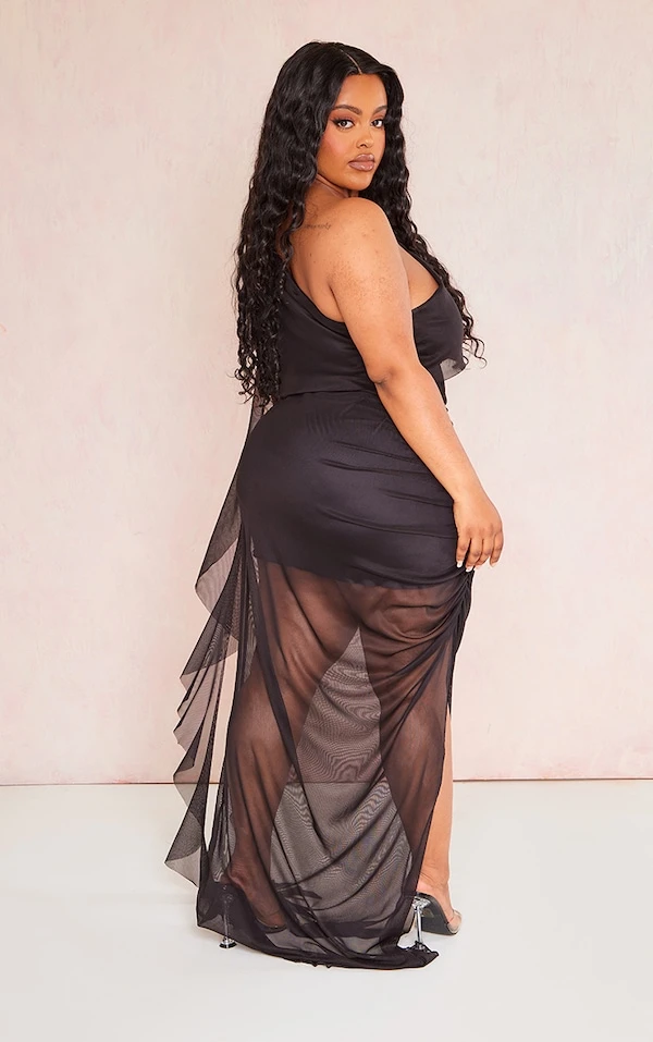 Trop belle dans cette robe au design asymétrique. Avec sa couleur noire qui se porte avec tout et sa matière en mesh volanté, on l’adore. Portez cette robe avec une paire de mules et quelques accessoires pour un look canon, comme vous !