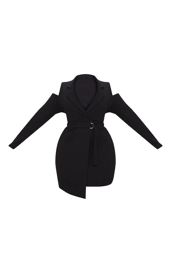 Dites oui à un look chic et on-point avec cette robe blazer noire à épaules dénudées et détail anneau. Complétez votre look avec une paire de talons à bride et vous voilà prête pour sortir avec votre Girl Gang.