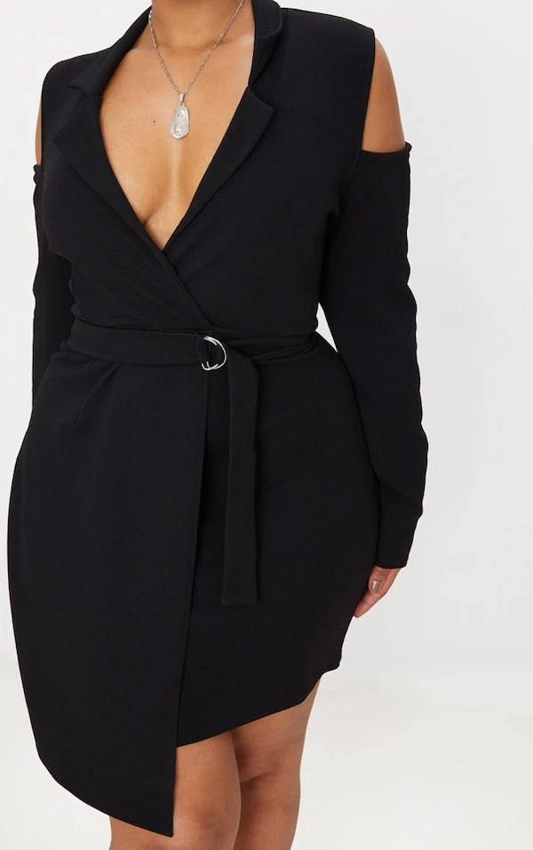 Plus – Robe blazer noire à épaules dénudées et détail anneau