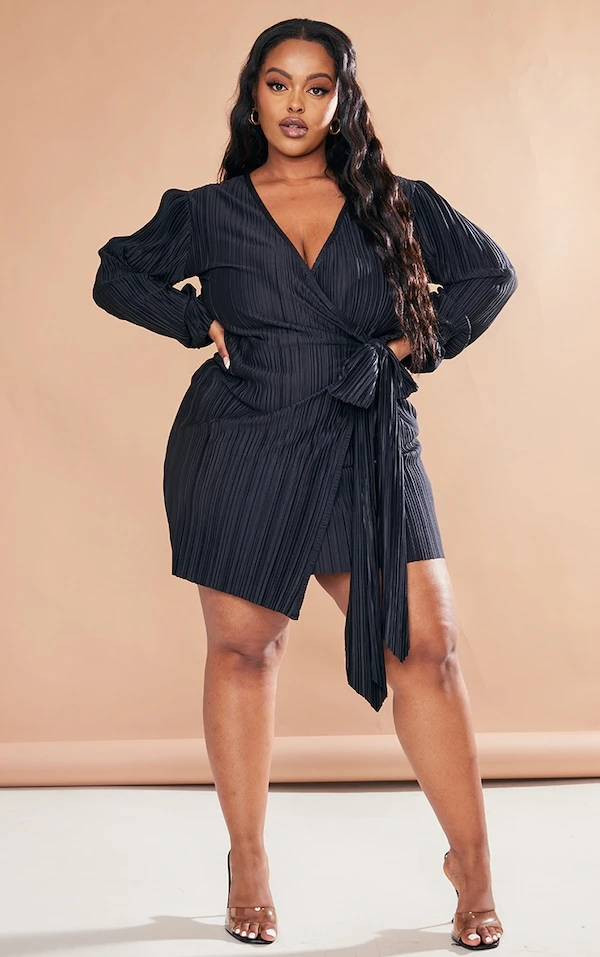 Plus Robe cache-coeur moulante plissée noire