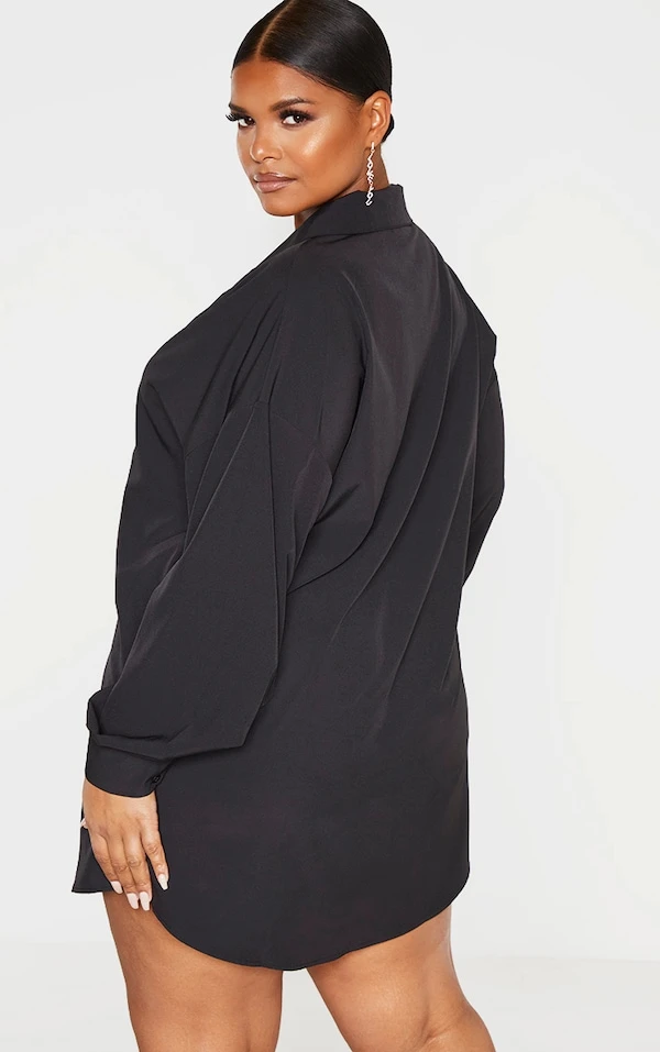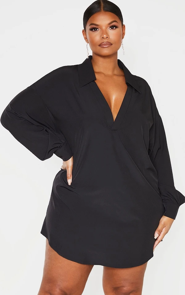 Plus Robe chemise droite noire à col en V