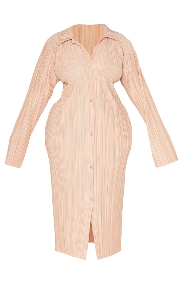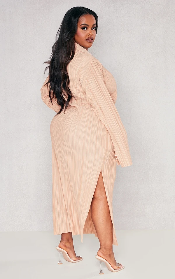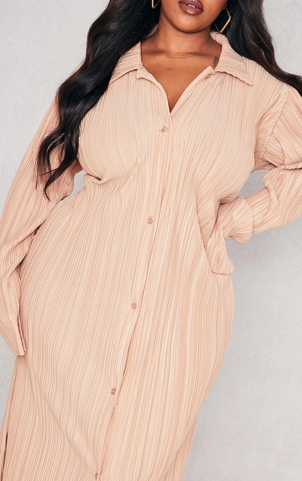 Plus Robe chemise mi-longue oversize gris pierre plissée