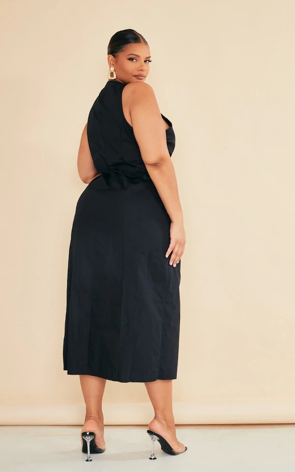 Plus Robe chemise mi-longue sans manche en popeline noire