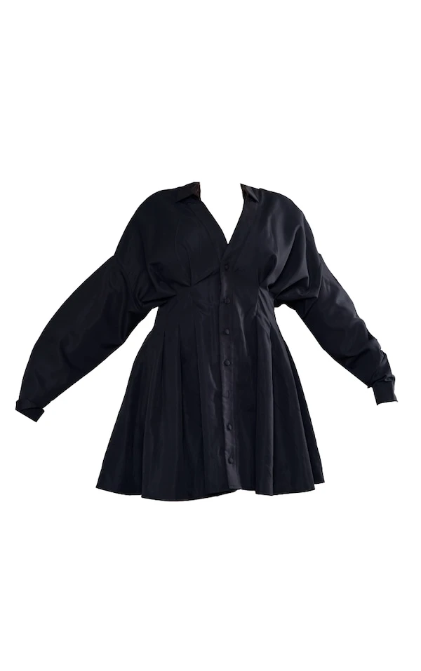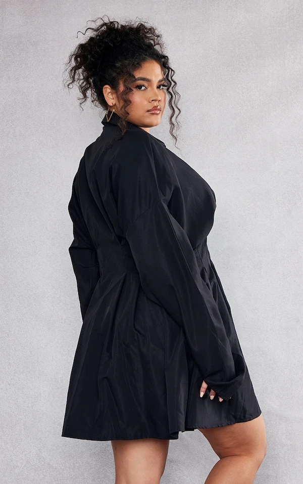 Plus Robe chemise oversize en maille tissée noire à détail plissé et boutons